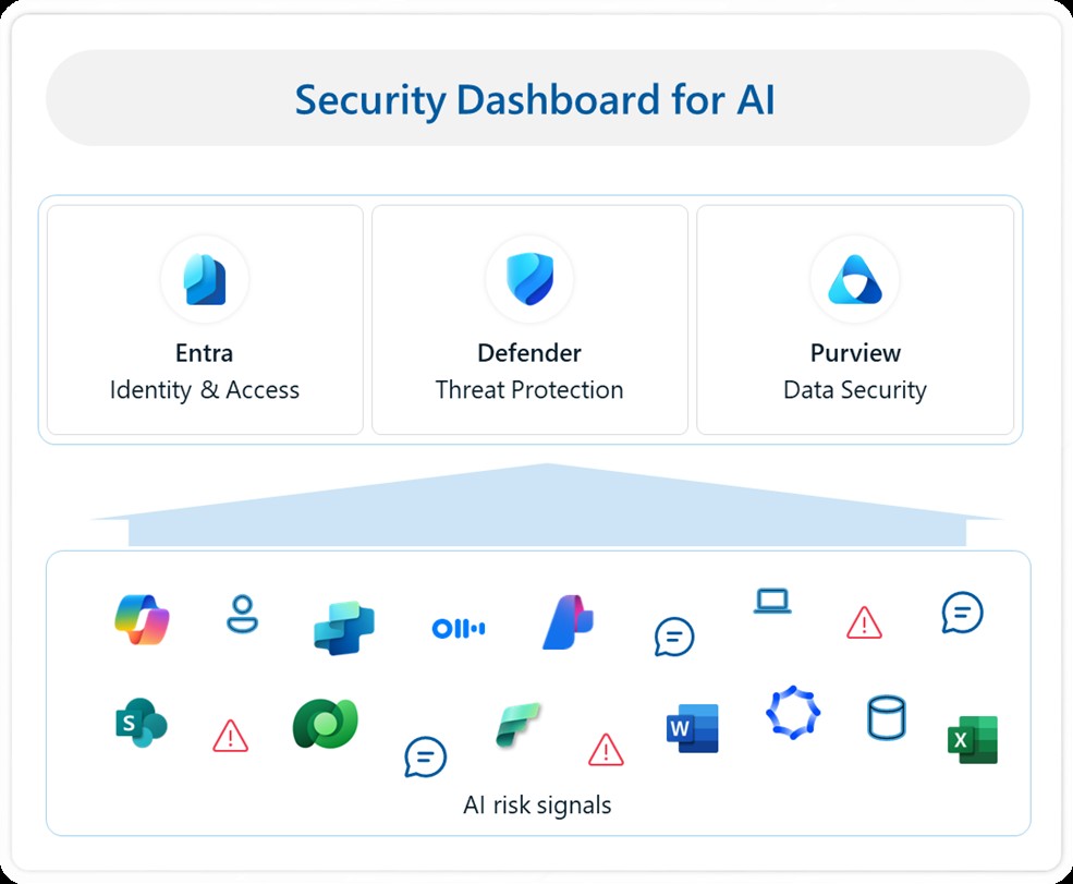 - Si votre organisation utilise déjà Microsoft Defender, Microsoft Entra et Microsoft Purview, le Security Dashboard for AI est déjà inclus (aucune licence supplémentaire requise).